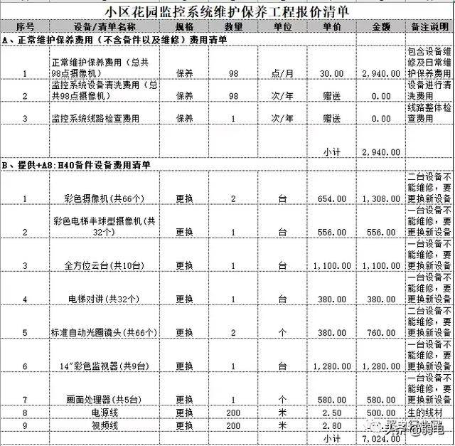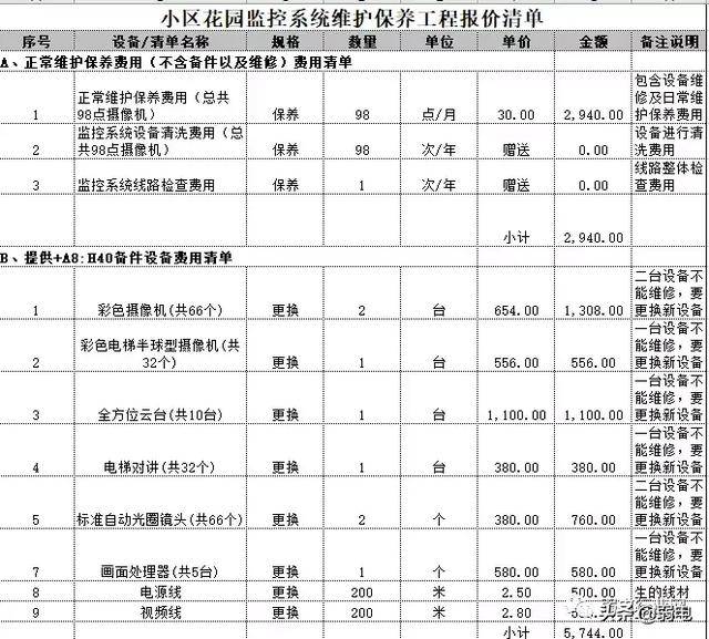 以上监控维保的价格供参考,监控的维护收费需要结合当地的工价、项目具体情况、以及监控系统的新旧来决定。