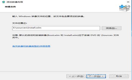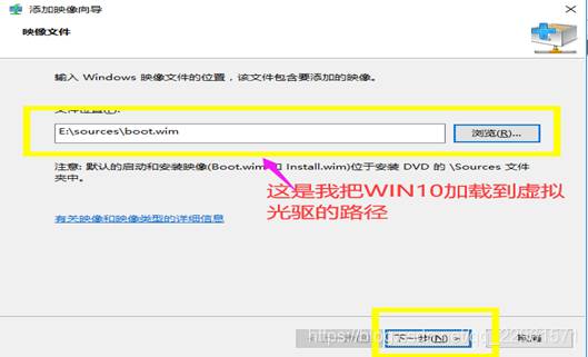 选择文件(把Windows10映像拷贝到机器并加载虚拟光驱,E盘为我Win10镜像虚拟光驱的盘符。)