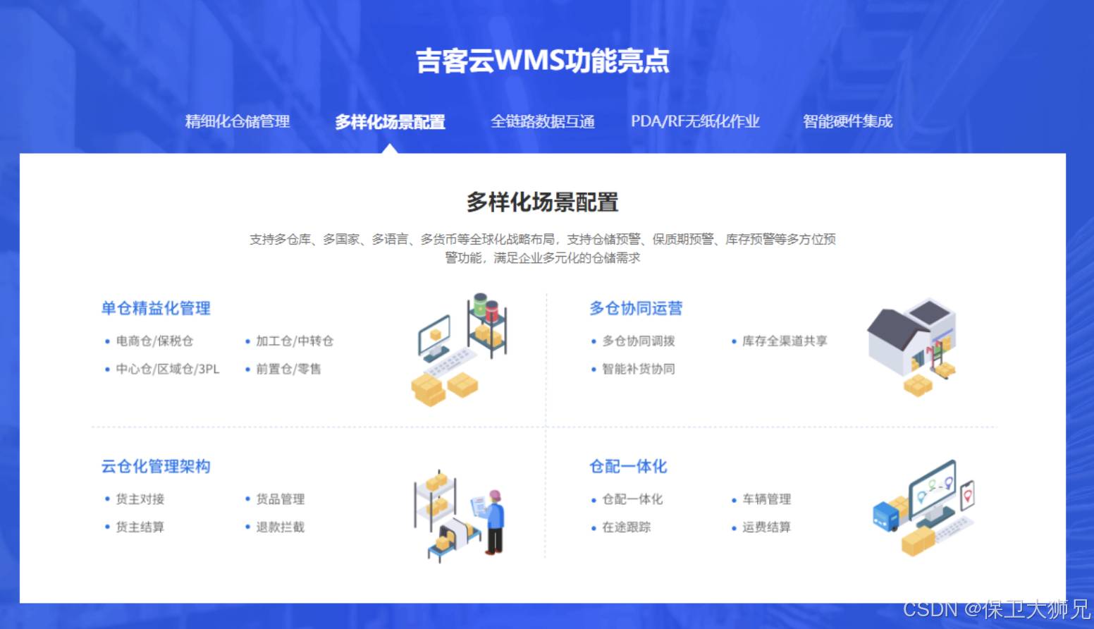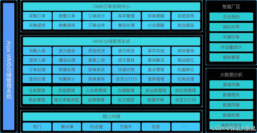 - 功能:涵盖入库、出库、库存盘点、策略规则配置等,支持B2B、B2C等多业务模式,满足企业多样化需求。