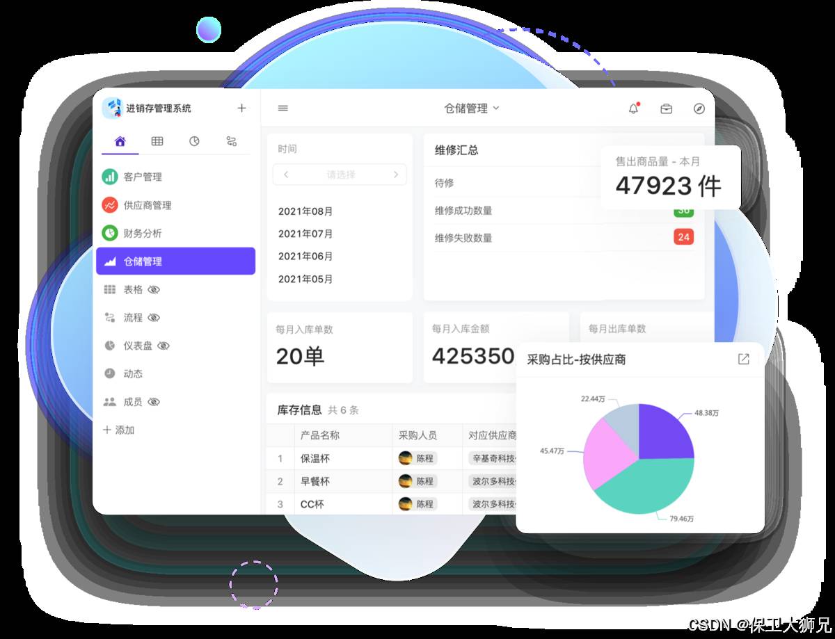 - 功能:库存管理、入库出库自动化、智能拣选路径规划、库存优化建议、多维度报表分析等,为企业提供全面的仓储管理解决方案。