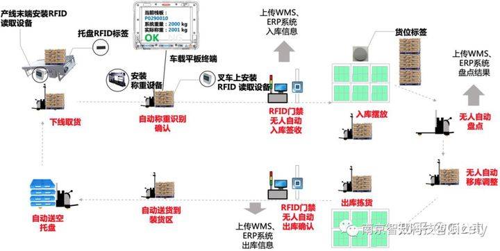 ②出库管理:拣货、打包、装箱流程完善,WMS下发出库任务,无人车间管理服务根据出库任务下发AGV调度指令,AGV根据指定线路前往指定库位,获取货物送往指定出库区。配合PDA设备扫描审核,出现错误时,会发出警报,让库管人员及时处理,最后把数据发送到系统中更新数据库完成出库。