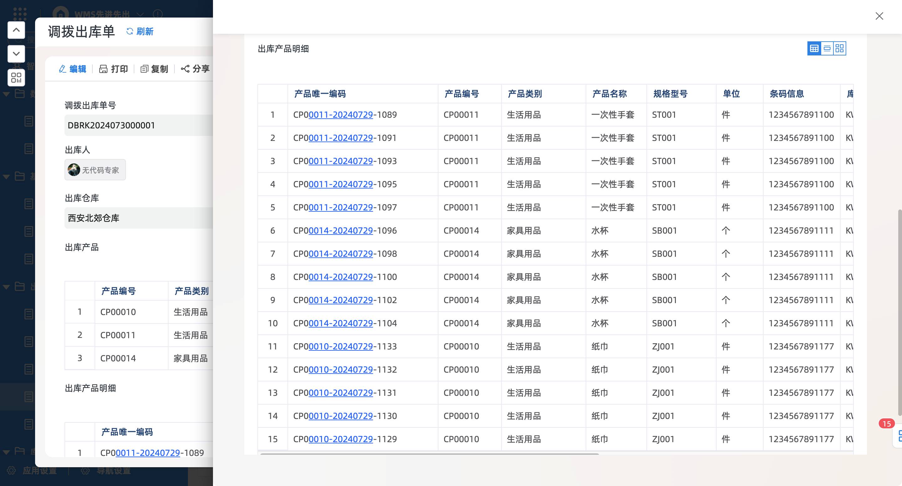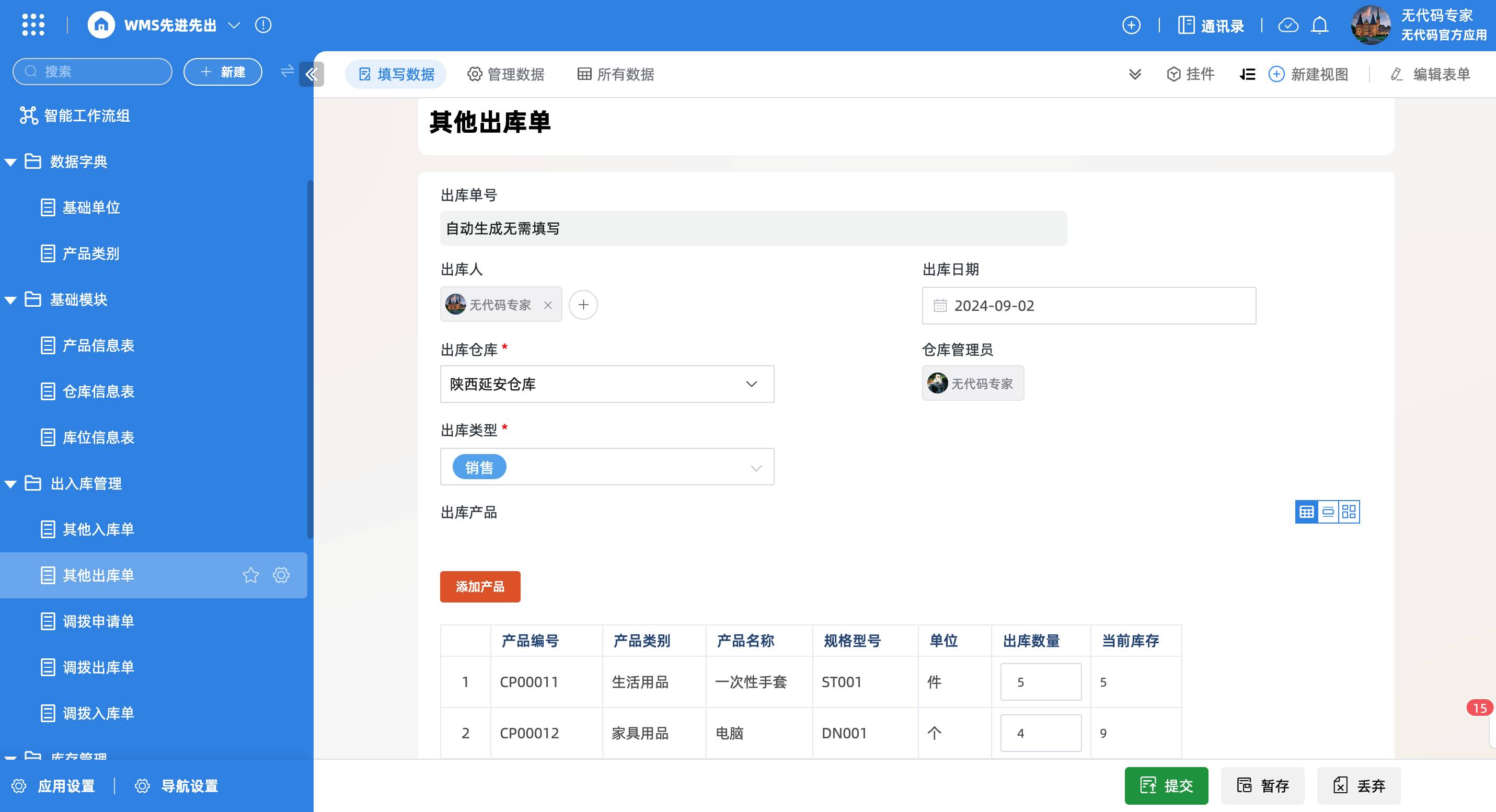 - 其他出库单:记录其他出库类型信息、出库产品明细等,防止库存数据遗漏。