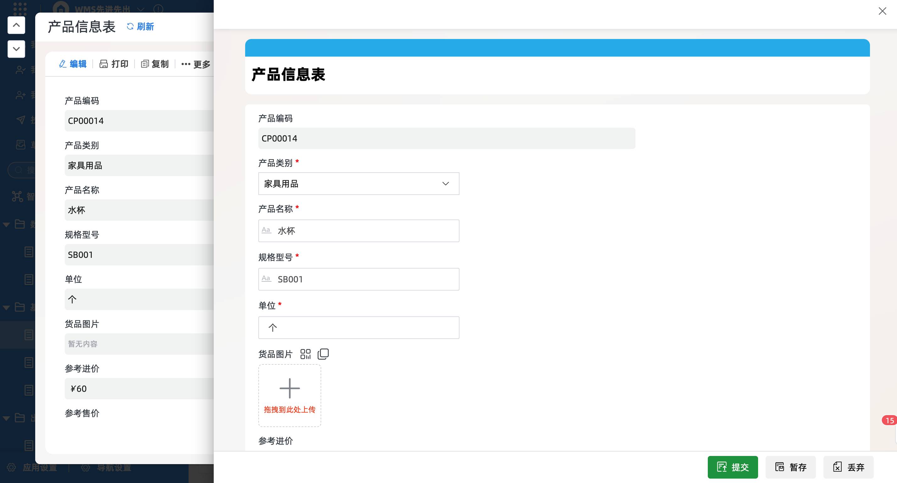 - 入库流水:根据入库申请流程,自动新建录入入库流水信息,无需人为手动重复填写提交。