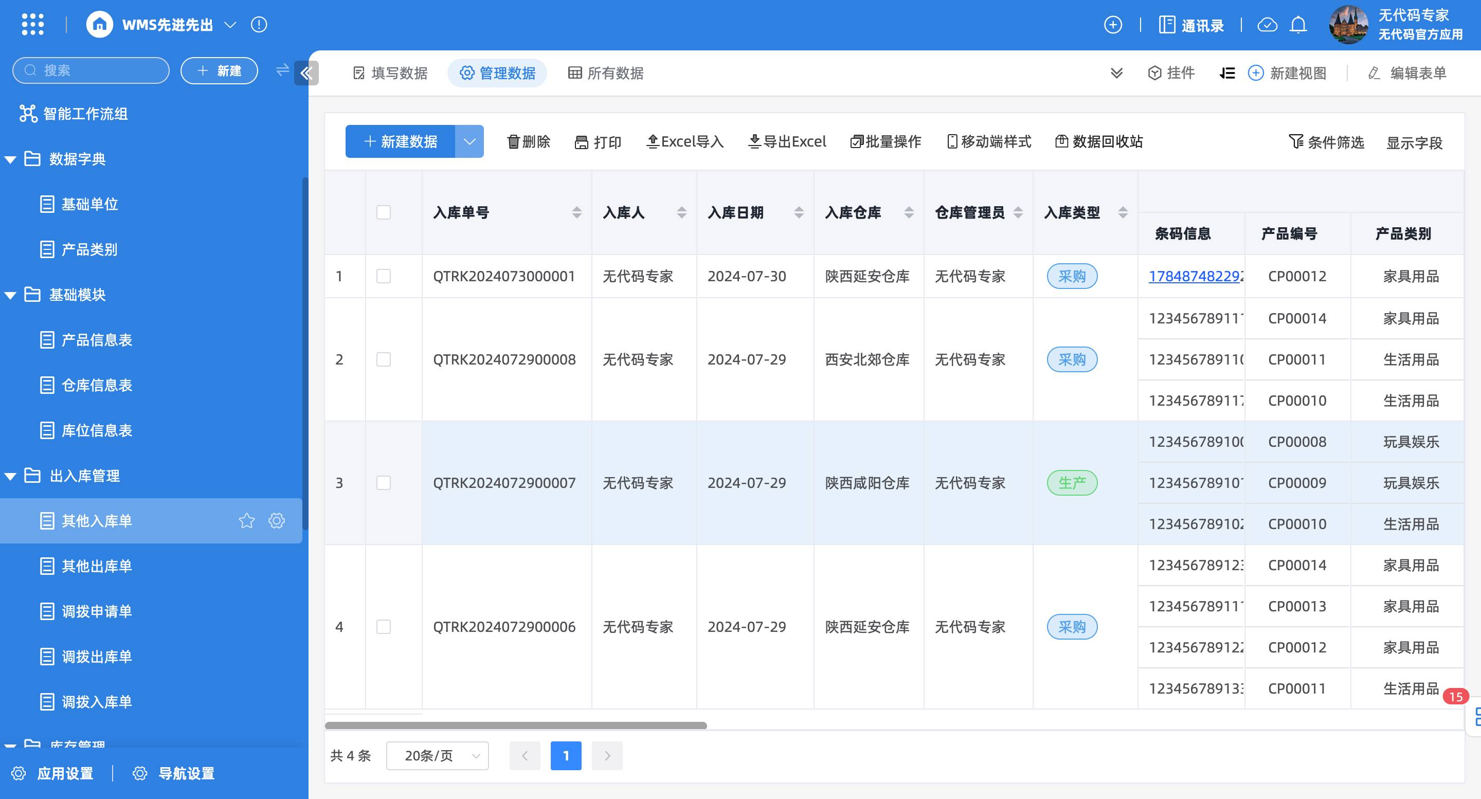 - 其他入库单:记录其他入库类型信息、入库产品明细等,确保库存信息全面、准确。