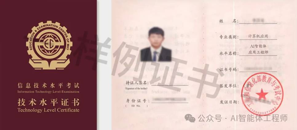工信部 AI 智能体工程师证书是由工信和信息化部相关职业技术证书最具权威的部门——教育与考试中心颁发的针对AI人工智能这一前沿科学技术实际应用及方案解决的技能证书,此证书在信息化技术及国内人工智能行业都具有极高的权威性和含金量。