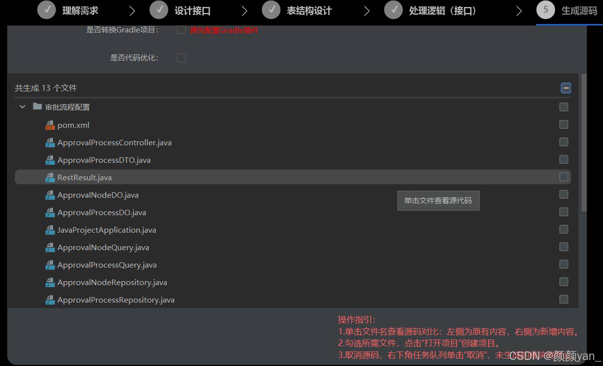 将源码生成模式由全量一次性生成,升级为按接口模块顺序逐一生成代码,支持生成过程中实时预览: