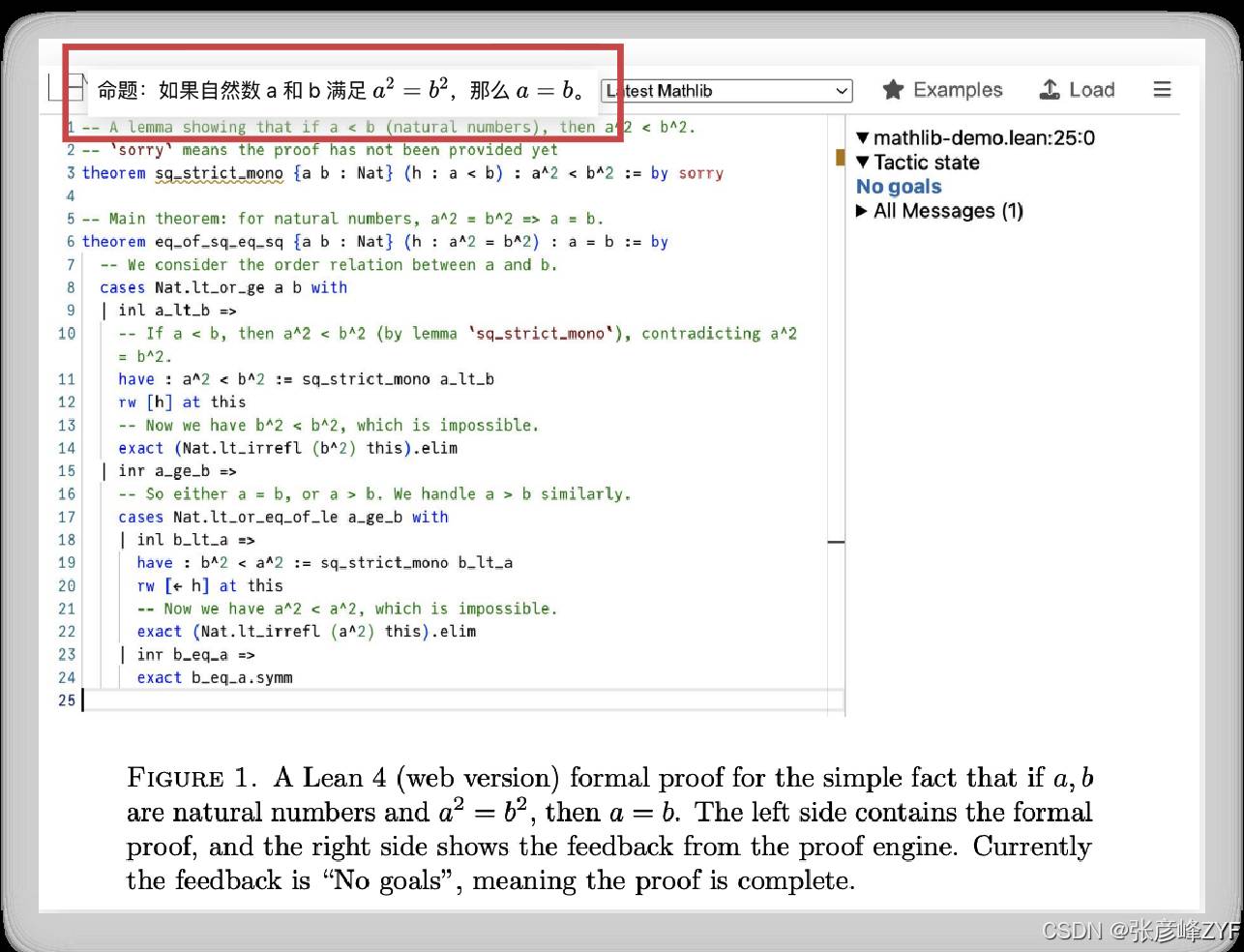 左侧是用 Lean 语言写出的形式证明;