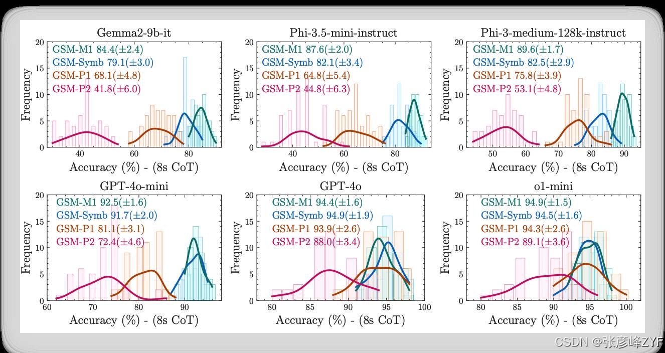 GSM-Symbolic 数据集测试发现,当问题语义结构被微调(即便表面意思相同),模型表现急剧下降;