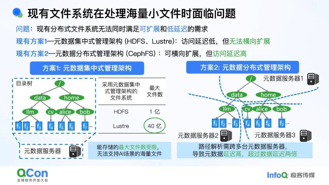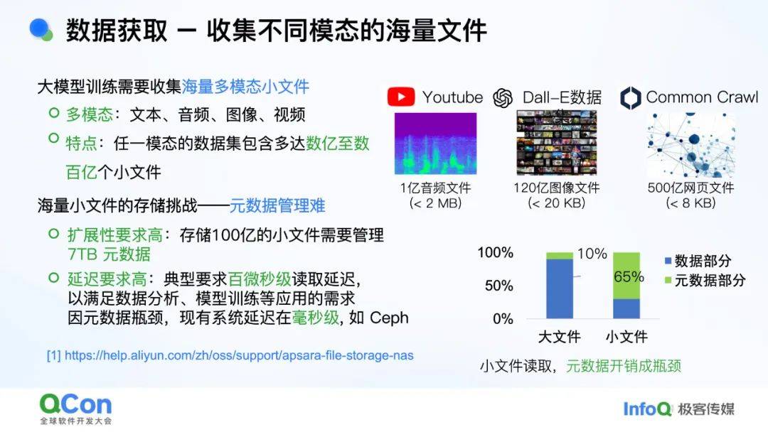 - *数据获取***:**海量小文件(文本、图像等)存储困难,传统文件系统(如Ceph)元数据管理效率低。
