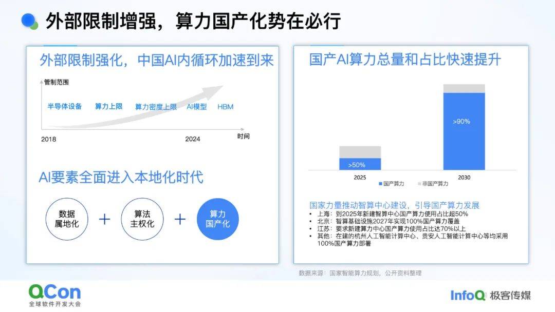 - *现状***:**英伟达GPU被限制,国产芯片生态薄弱(如编程框架、算子库不完善)。