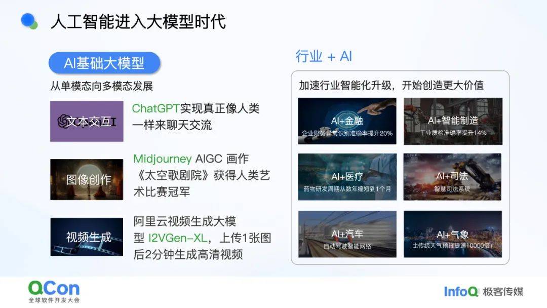 - *多模态融合***:**AI基础模型从文本转向图像、音频、视频等多模态数据,例如阿里云的“12VGen-XL”可通过一张图生成高清视频。