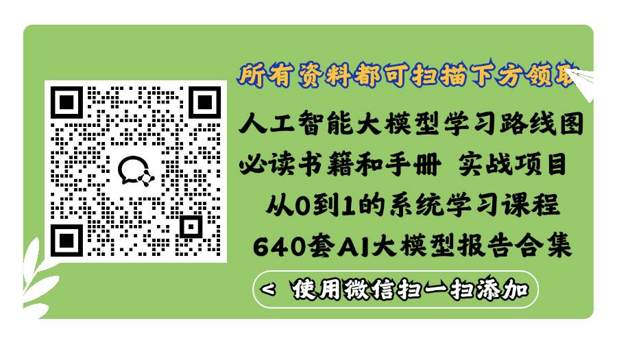 但苦于知识传播途径有限,很多互联网行业朋友无法获得正确的资料得到学习提升,故此将并将重要的 AI大模型资料 包括AI大模型入门学习思维导图、精品AI大模型学习书籍手册、视频教程、实战学习等录播视频免费分享出来。