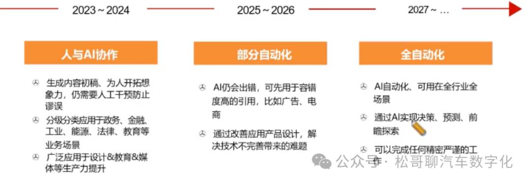 这一阶段自动化可能会出错,在一些容错高的地方可以先行应用,比如广告的场景、培训的场景等等。
