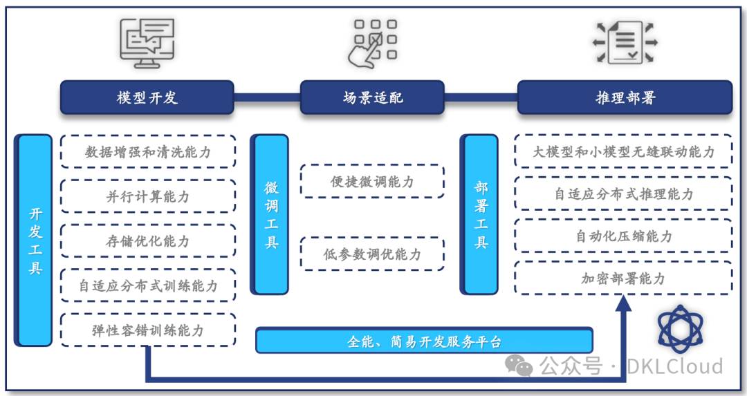 基于模型开发、场景适配和推理部署,AI 大模型未来将趋于平台化与简易化并进,将形成全能简易开发服务平台。