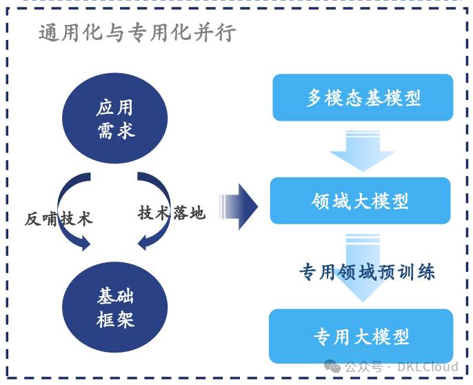 AI 大模型未来发展将趋于通用化与专用化并行。通用化是指模型能够适用于多个领域和任务,而专用化则是指模型被设计用于特定领域或任务。
