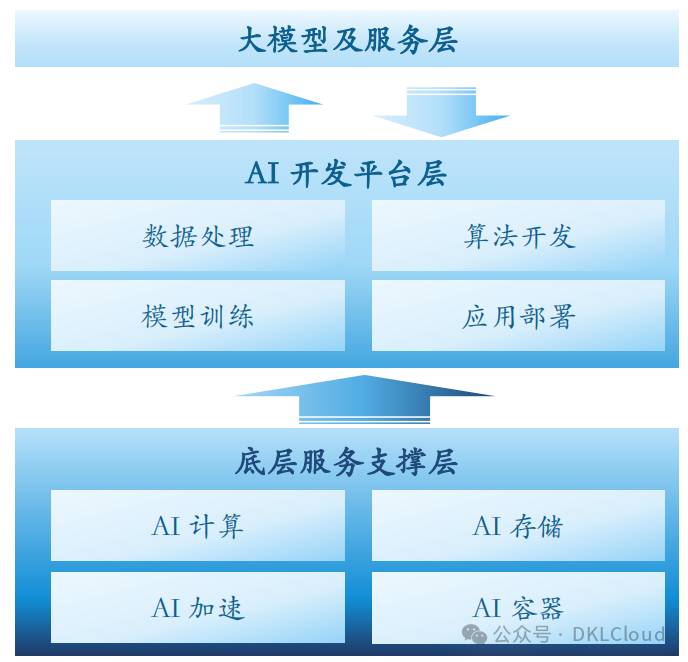 高效率、低成本、规模化的 AI 基础设施成长迅速,帮助夯实大模型基础。底层服务支撑层包含 AI 计算、存储、加速、容器核心套件,能够提供高性价比的算力,承载海量数据的处理、超大模型的训练和推理。
