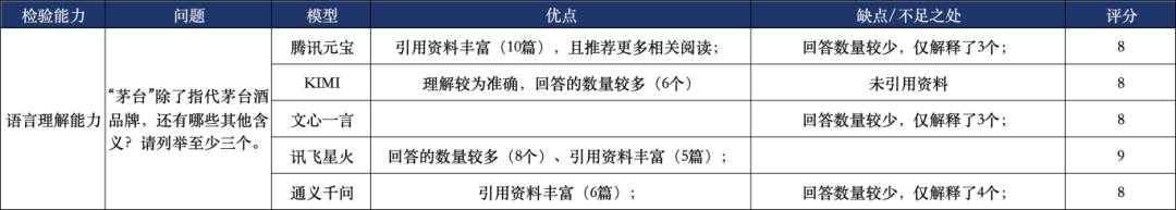 综上,从回答数量看,腾讯元宝、文心一言均是仅回答了3个解释,回答数量最多是讯飞星火8个、Kimi 6个。