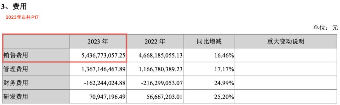 3)错误3:“2023年,公司销售费用约为36亿元,同比增长20%左右”。如下图报告所示,费用为54亿元。