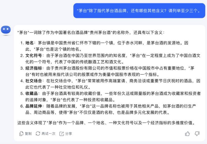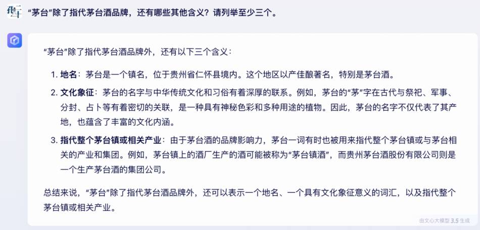 问题:“茅台”除了指代茅台酒品牌,还有哪些其他含义?请列举至少三个。