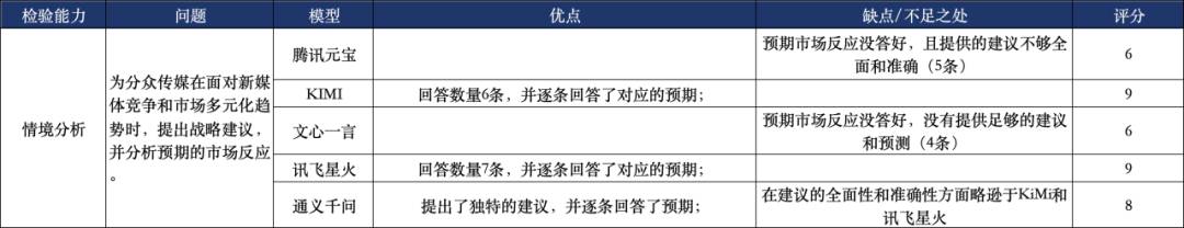 优点:1)语言理解能力较好,能够理解中文语意。2)情景分析能力强,给出的建议和预期市场反应相对较全面。