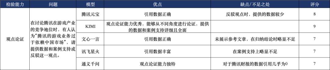 2)观点论证能力需要加强,例如在讨论腾讯游戏情况时,给出的数据和案例支持不够充分。