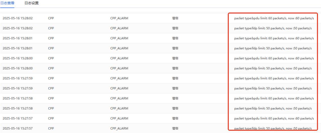 误以为是环路导致,故进行实验测试,来验证环路情况下会如何报日志。