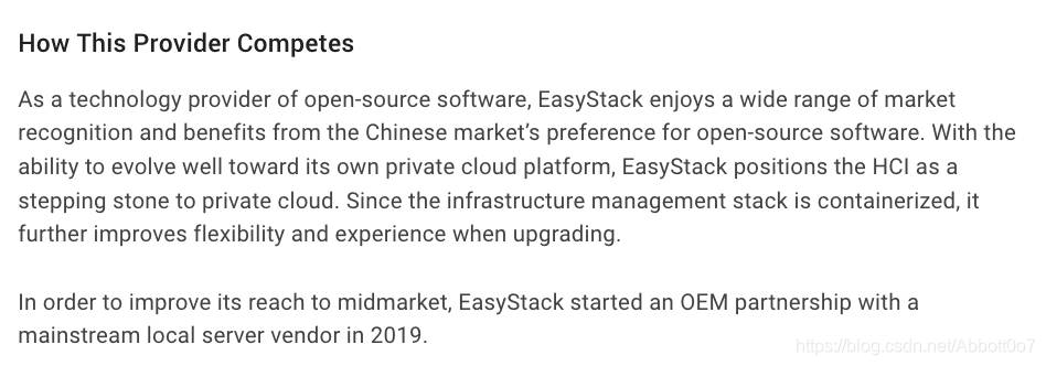 2.因为自身具有私有云平台的能力, Easystack 将 HCI 作为客户构建的私有云的关键步骤;