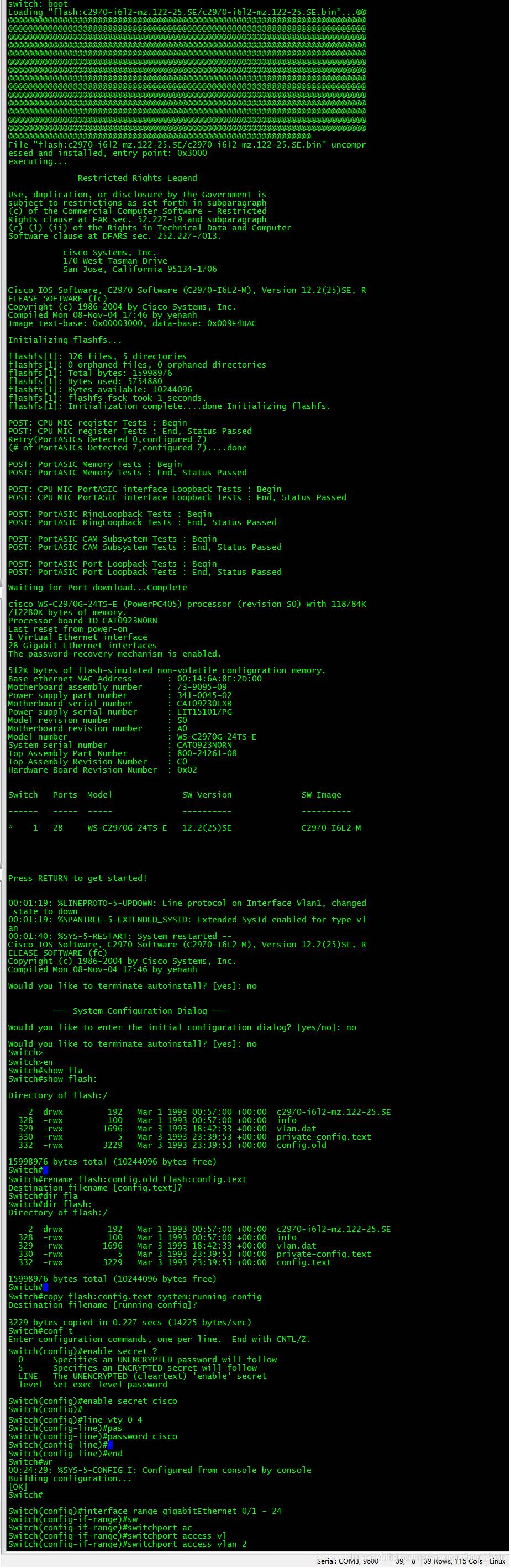 11、把config.old改回config.text(如下图)。命令:switch#rename flash:config.old flash:config.text