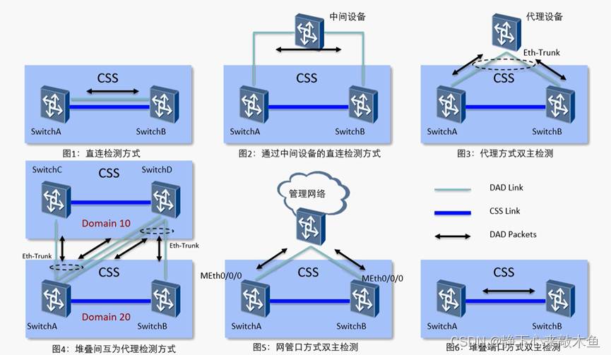 DAD(Dual-Active Detect)是一种检测和处理堆叠分裂的协议,可以实现分裂的检测、冲突处理和故障恢复,降低堆叠分裂对业务的影响