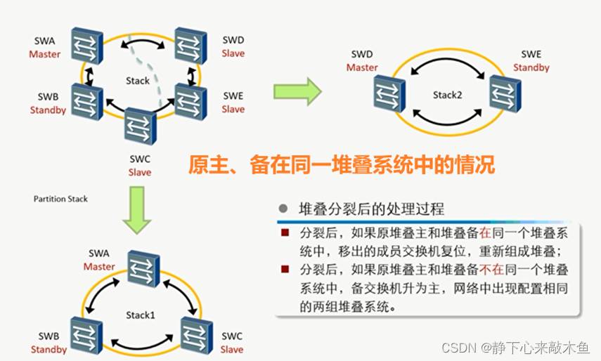 根绝堆叠分裂后主交换机和备交换机所处的位置不同可以分为两类