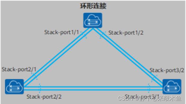 环形连接---成员交换机退出后,为保证网络的可靠性还需要把退出交换机的两个端口通过堆叠线缆进行连接