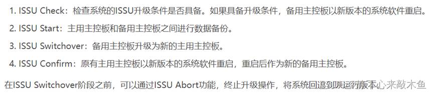 升级过程类似于快速升级方式,不过ISSU是基于主控板来实现的