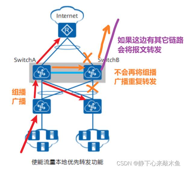 只负责报文数据转发,当主交换机故障时,备用交换机会接替原主交换机的所有业务