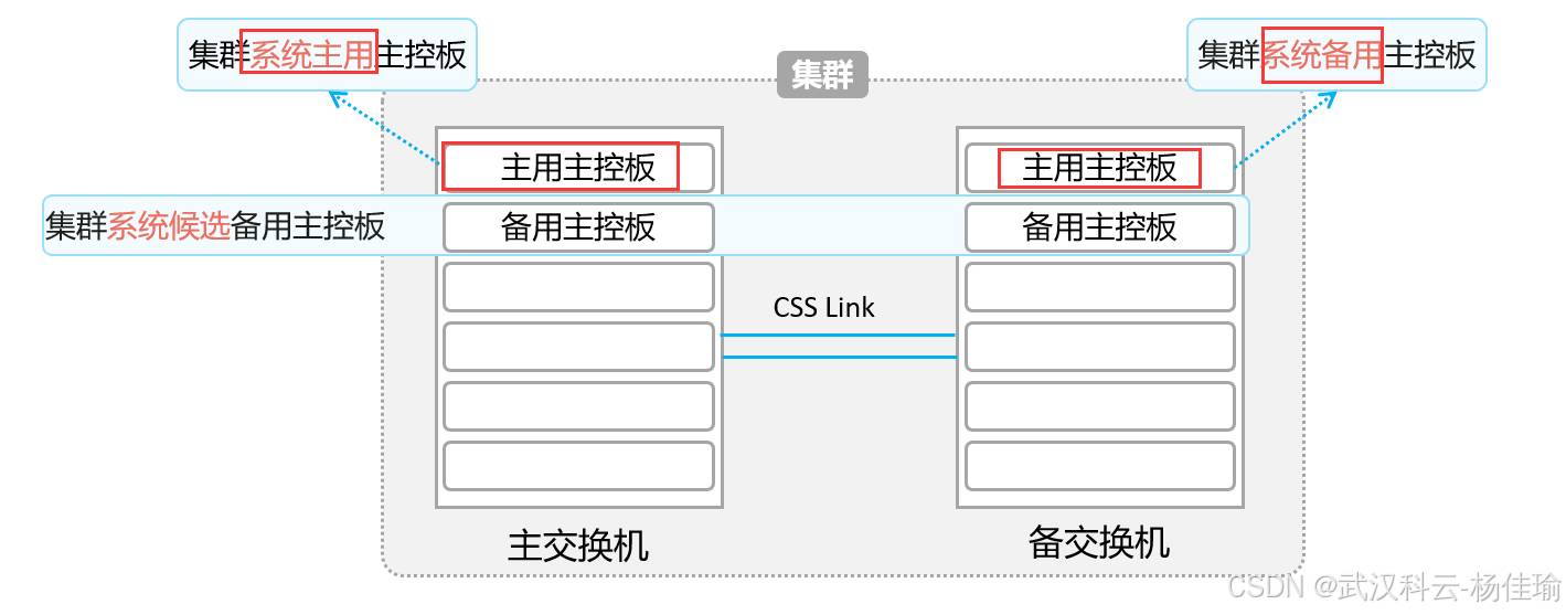 2.备交换机---主交换机的备份,只有当主交换机故障之后或者主交换机分裂出堆叠系统之后,备交换机成为主交换机,管理集群系统内所有的交换机