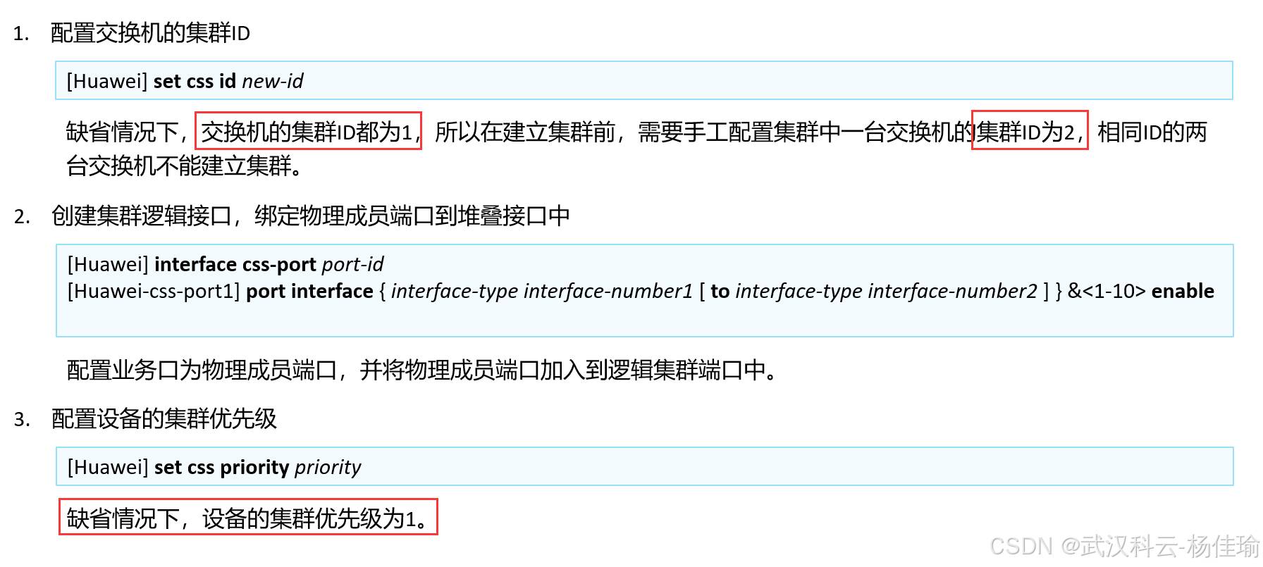 6.堆叠ID--作用1:唯一标识一台成员交换机 (也可以理解为同一个堆叠系统内的不同交换机堆叠ID不相同,用于唯一区分不同的交换机)