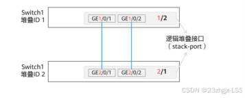 堆叠逻辑接口:交换机之间用于建立堆叠的逻辑接口,每台交换机支持两个逻辑堆叠端口,分别为stack-port n/1和stack-port n/2,其中n为成员交换机的堆叠ID。