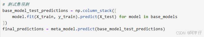 - 最终预测:在测试集上,先用基模型生成预测,然后输入元模型得到最终的预测。