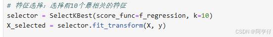 三、特征选择:选择前10个最相关的特征