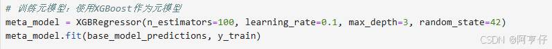 - 训练元模型:用新的特征矩阵训练一个新的线性回归模型(或者更复杂的模型,比如 XGBoost)。