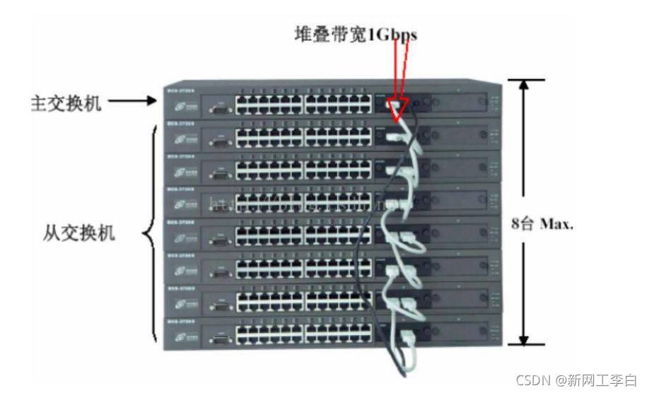 堆叠技术是在以太网交换机上扩展端口使用较多的另一类技术,是一种非标准化技术。