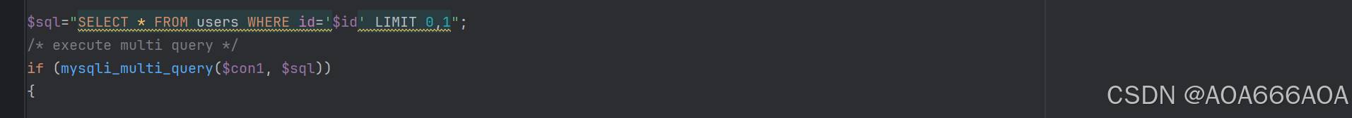 堆叠注入的原理:如果php代码中使用了mysql_multi_query()这个函数来调用MySQL里的东西,那么就表示网页有堆叠注入。mysql_multi_query()这个函数是用于执行多条sql语句,如下图