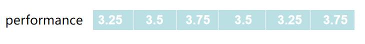 performance = np.array([3.25, 3.5, 3.75, 3.5, 3.25, 3.75])
