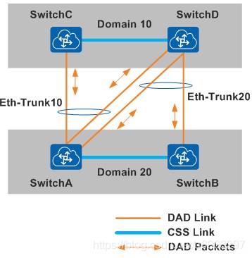 为了使DAD报文可以在Eth-trunk成员链路间互相转发,代理设备必须为支持DAD代理功能的交换机