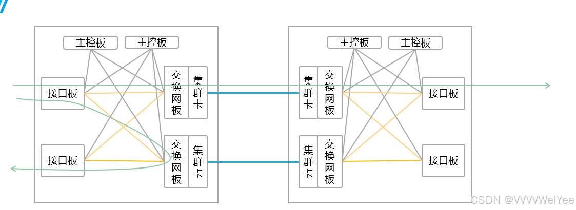 跨设备接口板通信需要经过集群卡,用业务口更是麻烦,导致1+1<2,设备性能消耗大