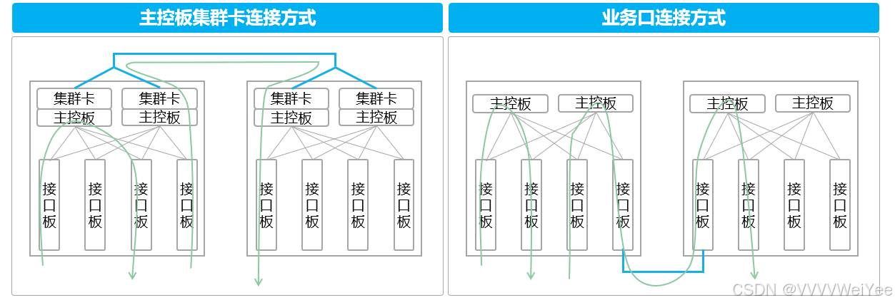 使用主控板上的集群卡建立集群连接,或者使用业务口建立集群连接