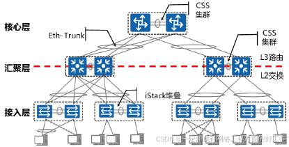 只能堆叠技术(Intelligent Stack)能够将多台支持堆叠特性的交换机从逻辑上变成一台交换机,作为一个整体参与数据转发。
