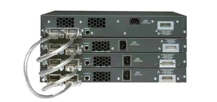 它们的不同之处在于:级联的交换机之间可以相距很远(在媒体许可方位内),而一个堆叠单元内的多台交换机之间的距离非常近,一般不超过几米;级联一般采用普通端口,而堆叠一般采用专用的堆叠模块和堆叠电缆。