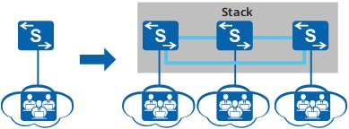 堆叠是指将多台支持堆叠特性的交换机通过堆叠线缆连接在一起,从逻辑上变成一台交换设备,作为一个整体参与数据转发。如图1所示,SwitchA与SwitchB通过堆叠线缆连接后组成堆叠系统。