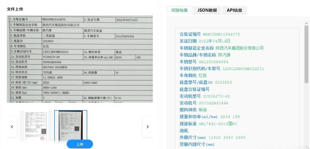 - 识别出的原始文本是杂乱无章的。系统会利用自然语言处理(NLP) 技术和预先设定的合格证模板规则,对文本进行语义分析和关联。