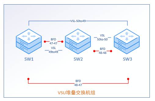 一般情况下:无论线性还是环形,建议首尾两台设备互联BFD即可(环形VSU使用任意两台互联)。